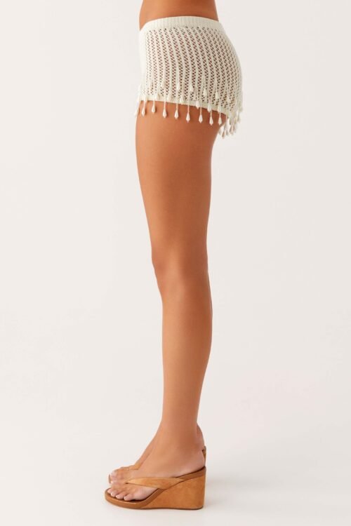 Pearl Shore Beaded Crochet Mini Shorts – Ivory
