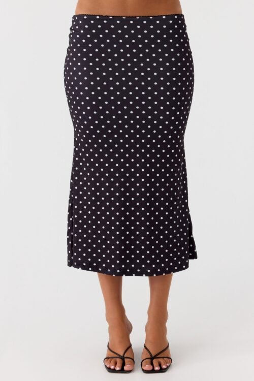 Bahama Low Rise Midi Skirt – Black Polkadot
