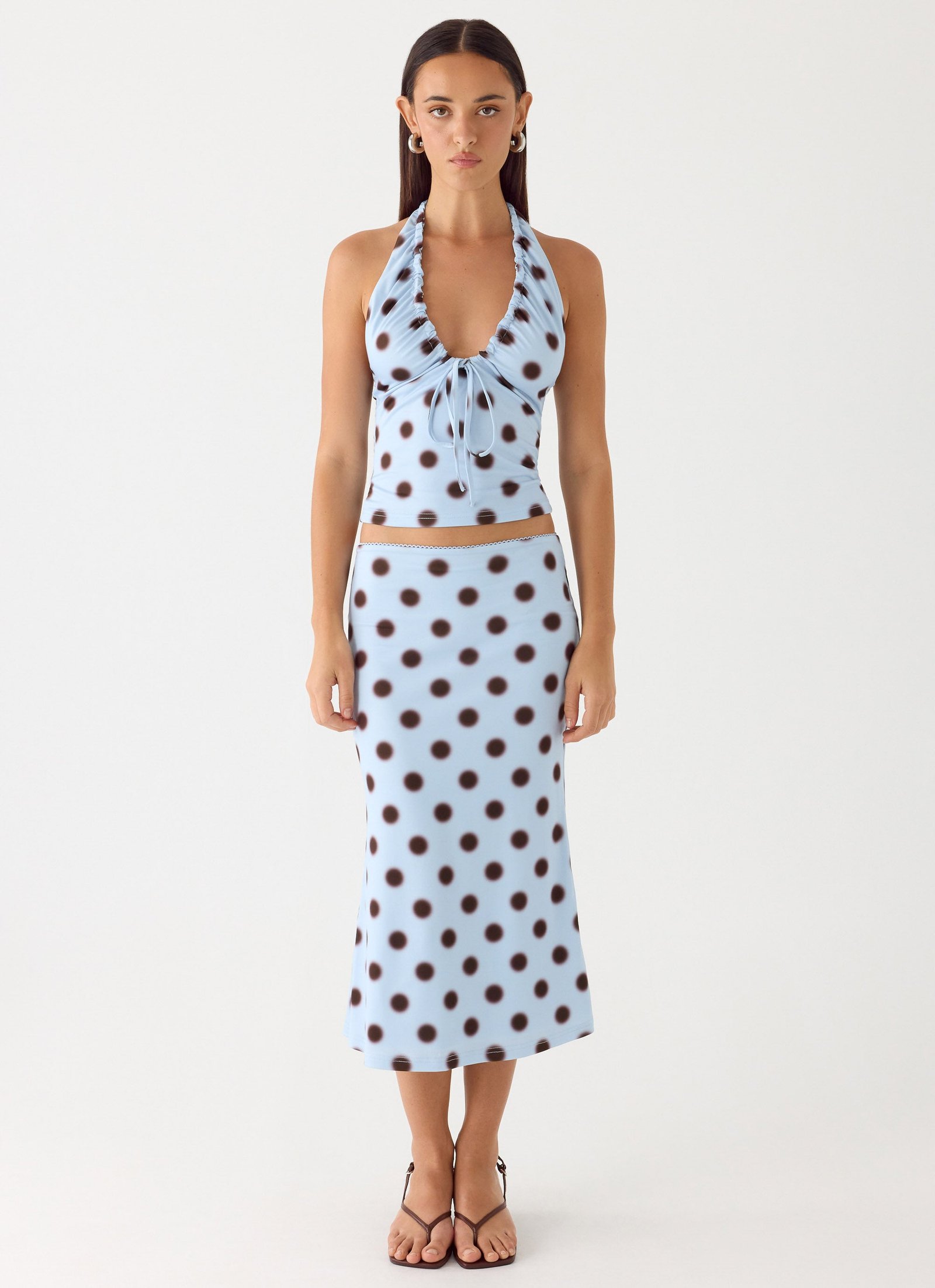The Ask You Twice Top is made for sun-kissed days that effortlessly transition into balmy evenings. Featuring a halter neck with adjustable front tie ruching, this crop-length style flatters the figure while offering playful movement. Crafted in stretch jersey with a fully lined finish, it provides a comfortable, confident fit.