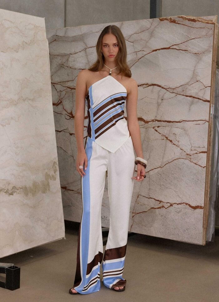 The satin Deacon Low Rise Pants offer a sleek, luxurious feel with an elasticated waistband and front tie for a perfect fit.