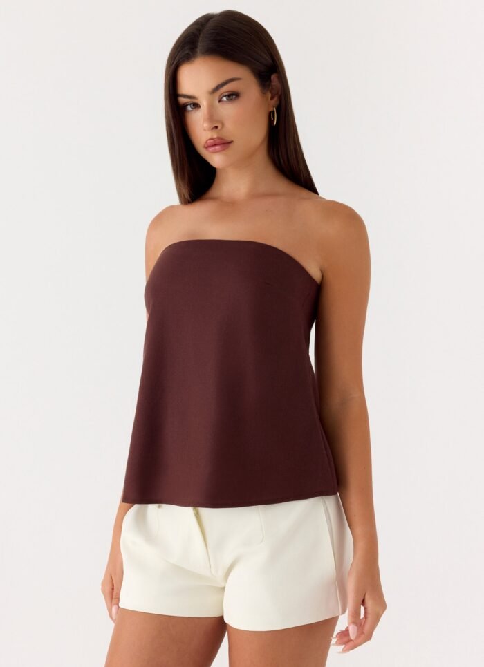 A chic strapless top crafted from a breathable cotton-linen blend. Designed with a clean strapless neckline, fully lined for comfort, and finished with a side invisible zipper for a sleek fit.