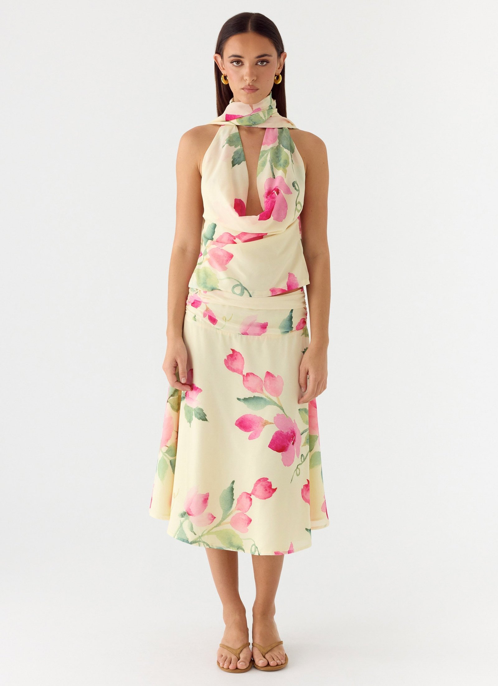 The Get Me Halter Backless Top is made for nights that glow long after sunset. Featuring a low cowl neckline with fluid scarf detailing, this statement silhouette is designed to be worn multiple ways for an effortlessly confident look. Finished with a backless shape and button detailing.