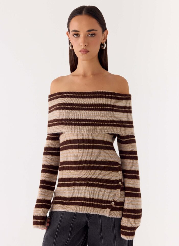 The Nichola Knit Jumper is made for effortless, sun-soaked days with a playful edge. Featuring an off-shoulder neckline, this long-sleeve jumper combines a relaxed fit with an exclusive print for a standout, editorial look. Soft knit construction ensures comfort while keeping the style elevated and chic.